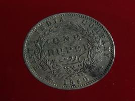 | Description / विवरण | The obverse shows the uncrowned head of the young Victoria with her hair done in a pony-tail. The legend in this coin is divided . Milled rim, with dotted circle. Obverse legend Victoria Queen. At the truncation, the raised initials WW , very small, barely visible. Reverse, in centre One rupee yak rupiah in Persian characters . Surrounded with crossed leafy branches wreath, with berries, tied with a ribbon. At bottom, the date 1840 , & the words East India Company along the edge. |