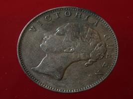 | Description / विवरण | The obverse shows the uncrowned head of the young Victoria with her hair done in a pony-tail. The legend in this coin is divided . Milled rim, with dotted circle. Obverse legend Victoria Queen. At the truncation, the raised initials WW , very small, barely visible. Reverse, in centre One rupee yak rupiah in Persian characters . Surrounded with crossed leafy branches wreath, with berries, tied with a ribbon. At bottom, the date 1840 , & the words East India Company along the edge. |