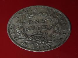 | Description / विवरण | The obverse shows the uncrowned head of the young Victoria with her hair done in a pony-tail. The legend in this coin is divided . Milled rim, with dotted circle. Obverse legend Victoria Queen. At the truncation, the raised initials WW , very small, barely visible. Reverse, in centre One rupee yak rupiah in Persian characters . Surrounded with crossed leafy branches wreath, with berries, tied with a ribbon. At bottom, the date 1840 , & the words East India Company along the edge. |