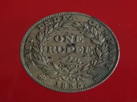 | Description / विवरण | The obverse shows the uncrowned head of the young Victoria with her hair done in a pony-tail. The legend in this coin is divided . Milled rim, with dotted circle. Obverse legend Victoria Queen. At the truncation, the raised initials WW , very small, barely visible. Reverse, in centre One rupee yak rupiah in Persian characters . Surrounded with crossed leafy branches wreath, with berries, tied with a ribbon. At bottom, the date 1840 , & the words East India Company along the edge. |