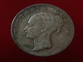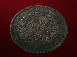 | Description / विवरण | The obverse shows the uncrowned head of the young Victoria with her hair done in a pony-tail. The legend in this coin is divided . Milled rim, with dotted circle. Obverse legend Victoria Queen. At the truncation, the raised initials WW , very small, barely visible. Reverse, in centre One rupee yak rupiah in Persian characters . Surrounded with crossed leafy branches wreath, with berries, tied with a ribbon. At bottom, the date 1840 , & the words East India Company along the edge. |