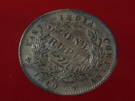 | Description / विवरण | The obverse shows the uncrowned head of the young Victoria with her hair done in a pony-tail. The legend in this coin is divided . Milled rim, with dotted circle. Obverse legend Victoria Queen. At the truncation, the raised initials WW , very small, barely visible. Reverse, in centre One rupee yak rupiah in Persian characters . Surrounded with crossed leafy branches wreath, with berries, tied with a ribbon. At bottom, the date 1840 , & the words East India Company along the edge. |