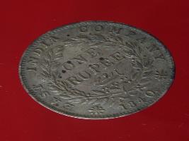 | Description / विवरण | The obverse shows the uncrowned head of the young Victoria with her hair done in a pony-tail. The legend in this coin is divided . Milled rim, with dotted circle. Obverse legend Victoria Queen. At the truncation, the raised initials WW , very small, barely visible. Reverse, in centre One rupee yak rupiah in Persian characters . Surrounded with crossed leafy branches wreath, with berries, tied with a ribbon. At bottom, the date 1840 , & the words East India Company along the edge. |