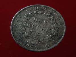 | Description / विवरण | The obverse shows the uncrowned head of the young Victoria with her hair done in a pony-tail. The legend in this coin is divided . Milled rim, with dotted circle. Obverse legend Victoria Queen. At the truncation, the raised initials WW , very small, barely visible. Reverse, in centre One rupee yak rupiah in Persian characters . Surrounded with crossed leafy branches wreath, with berries, tied with a ribbon. At bottom, the date 1840 , & the words East India Company along the edge. |
