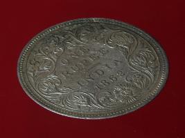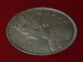 | Description / विवरण | The obverse shows the crowned bust of Victoria facing left, with the divided legend on either side along the edge. Milled rim, with dotted circle. Obverse legend Victoria Queen. Reverse, in centre, surrounded by floral border One rupee India 1862. Double circle with dots along the edge. |