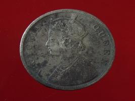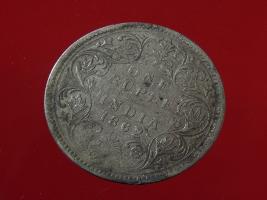 | Description / विवरण | The obverse shows the crowned bust of Victoria facing left, with the divided legend on either side along the edge. Milled rim, with dotted circle. Obverse legend Victoria Queen. Reverse, in centre, surrounded by floral border One rupee India 1862. Double circle with dots along the edge. |