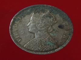 | Description / विवरण | The obverse shows the crowned bust of Victoria facing left, with the divided legend on either side along the edge. Milled rim, with dotted circle. Obverse legend Victoria Queen. Reverse, in centre, surrounded by floral border One rupee India 1862. Double circle with dots along the edge. |