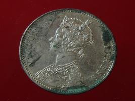 | Description / विवरण | The obverse shows the crowned bust of Victoria facing left, with the divided legend on either side along the edge. Milled rim, with dotted circle. Obverse legend Victoria Queen. Reverse, in centre, surrounded by floral border One rupee India 1880. Double circle with dots along the edge. |