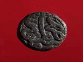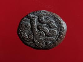 | Description / विवरण | Copper dam fulus of Akbar 962-1014 AH; 1556-1605 AD , from the ambulant Mughal mint, Urdu Zafar Qarin. Obverse fulus alaf zarb. Reverse Urdu Zafar Qarin . Partly within a circle with dots. |