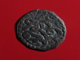 | Description / विवरण | Copper dam fulus of Akbar 962-1014 AH; 1556-1605 AD , from the ambulant Mughal mint, Urdu Zafar Qarin. Obverse fulus alaf zarb. Reverse Urdu Zafar Qarin. Traces of a circle with dots on both faces . |