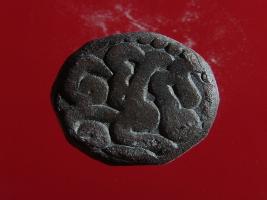 | Description / विवरण | Copper dam fulus of Akbar 962-1014 AH; 1556-1605 AD , from the ambulant Mughal mint, Urdu Zafar Qarin. Obverse fulus alaf zarb. Reverse Urdu Zafar Qarin. Traces of dotted circle on both sides. |