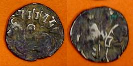 | Description / विवरण | Descrpn./Obv Recumbent bull facing left, wearing jhula (saddle cloth), with trisula (trident) symbol on rump. Above, legend in Sarada script Sri Samantadeva . Descrpn./Rev Rider with lance on caparisoned horse facing right. On left, Sarada letter bhi and on right, Sarada letter ta |