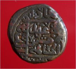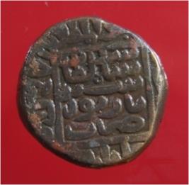 | Description / विवरण | Copper dam of Sultan Sher Shah Suri 946-52 AH; 1539-45 AD , from the Narnaul Narnol mint. Obverse; in square area, read bottom up zarb Narnol Sher Shah Sultan In top margin Abu Al Muzaffar In others Illegible. Reverse; in square area, read top down Fi ahad Al Amir Al Halmi Margins are illegible, but for Al Din in the left margin. |
