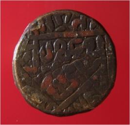 | Description / विवरण | Copper dam of Sultan Sher Shah Suri 946-52 AH; 1539-45 AD , without date & mint illegible. Obverse, in square zarb Sher Shah Sultan. Rest illegible; Reverse, in square Fi Ahad . Rest is illegible; appears to be have been double struck. |