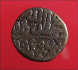 | Description / विवरण | Copper dam of Sultan Sher Shah Suri 946-52 AH; 1539-45 AD from the Narnaul mint. Obverse, reading from below Abu al Muzaffar Sher Shah Sultan. Reverse khuld Allah Mulkah 950. Rest illegible. Unusual arrangement of legends. Much is off-flan. |