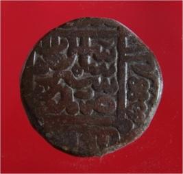 | Description / विवरण | Copper dam of Sultan Sher Shah Suri 946-52 AH; 1539-45 AD of the Malot mint. Obverse, in square zarb Malot Sher Shah Sultan. Margins illegible; in rt. Margin 2 ornamental arabesques. Reverse, in square fi ahad al Amir al Hami. Top margin al adil Rest illegible Left margin Has again a quatrefoil ornament |