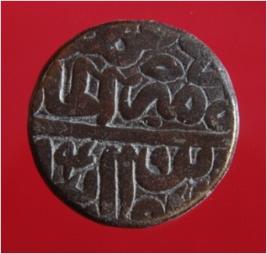| Description / विवरण | Copper dam of Sultan Sher Shah Suri 946-52 AH; 1539-45 AD . Obverse Abu al Muzaffar Sher Shah Sultan Khuld Allah Mulkah. Last line largely cut off. Reverse fi ahad al Amir al Hami al din al diyan 949 AH. |