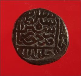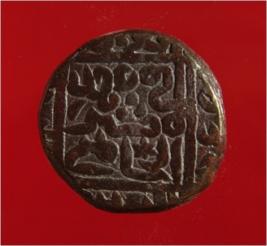 | Description / विवरण | Copper dam of Sultan Sher Shah Suri 946-52 AH; 1539-45 AD . Obverse, in looped square zarb Hissar Sher Shah Sultan. Bottom margin Khuld Allah. Rest illegible. Reverse, in square Fi ahad al Amir al hami. In rt. Margin, traces of date 951 reading uncertain . |