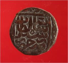 | Description / विवरण | Copper dam of Sultan Sher Shah Suri 946-52 AH; 1539-45 AD . Obverse, in square zarb Hissar Sher Shah Sultan. Margins illegible. Reverse, in square Fi ahad al Amir al hami. Margins illegible; swastika above al ha |