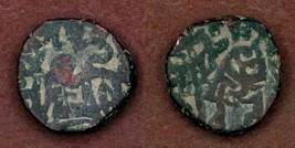 | Description / विवरण | Descrpn./Obv Recumbent bull facing left, wearing jhula (saddle cloth). Above, legend in Sarada script Sri Samantadeva (in cursive letters, mostly truncated and seen partially or off the flan). Descrpn./Rev Rider with lance on caparisoned horse facing right. |