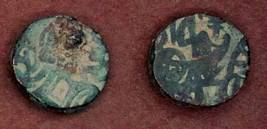 | Description / विवरण | Descrpn./Obv Recumbent bull facing left, wearing jhula (saddle cloth). Above, legend in Sarada script Sri Samantadeva (in cursive letters, mostly truncated and seen partially or off the flan). Descrpn./Rev Rider with lance on caparisoned horse facing right. |