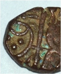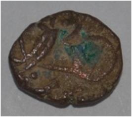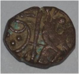 Coin in irregular shape. Obverse Horseman to the left. Man on the horseback and flagpole at the back of horse. Reverse Couchant bull facing right and hump on the top.