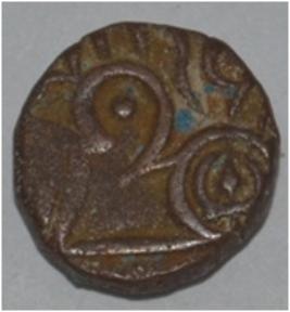 Obverse Horseman to the left. Man on the horseback and flagpole at the back of horse. Reverse Couchant bull facing right and traces of legend on the top.