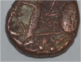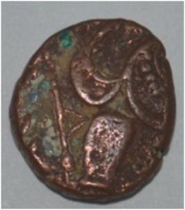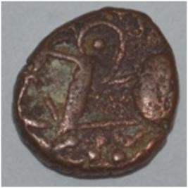 Obverse Horseman to the left. Man on the horseback and flagpole at the back of horse. Reverse Couchant bull facing right and traces of legend on the top.