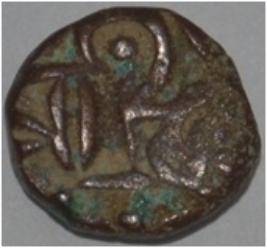 Obverse Horseman to the left. Man on the horseback and flagpole at the back of horse. Reverse Couchant bull facing right and hump on the top.