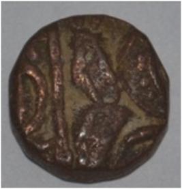 Obverse Horseman to the left. Man on the horseback and flagpole at the back of horse. Reverse Couchant bull facing right and traces of legend on the top.