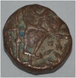 Obverse Horseman to the left. Man on the horseback and flagpole at the back of horse. Reverse Couchant bull facing right and hump on the top.