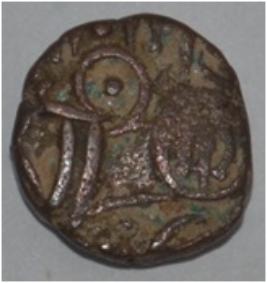 Obverse Horseman to the left. Man on the horseback and flagpole at the back. Reverse Couchant bull facing right and traces of legend on the top.