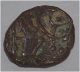 Obverse Horseman to the left. Man on the horseback and flagpole at the back of horse. Reverse Couchant bull facing right and traces of legend on the top.