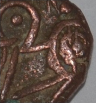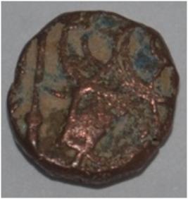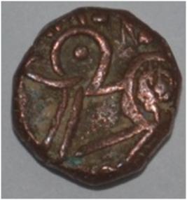Obverse Horseman to the left. Man on the horseback and flagpole at the back. Reverse Couchant bull facing right and traces of legend on the top.