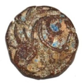 Obverse Horseman to the left. Man on the horseback. Reverse Couchant bull facing right and traces of legend on the top.