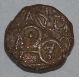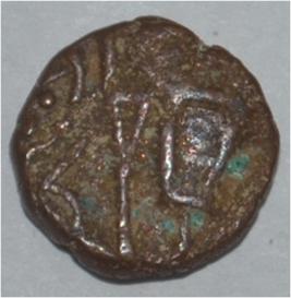Obverse Horseman to the left. Man on the horseback and flagpole at the back of horse. Reverse Couchant bull facing right and traces of legend on the top.