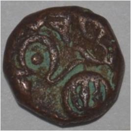 Obverse Horseman to the left. Man on the horseback and flagpole at the back. Reverse Couchant bull facing right and traces of legend on the top.