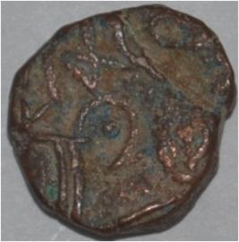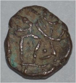 Obverse Horseman to the left. Man on the horseback and flagpole at the back. Reverse Couchant bull facing right and traces of legend on the top.