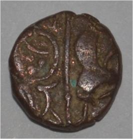 Obverse Horseman to the left. Man on the horseback and flagpole at the back of horse. Reverse Couchant bull facing right and hump on the top.