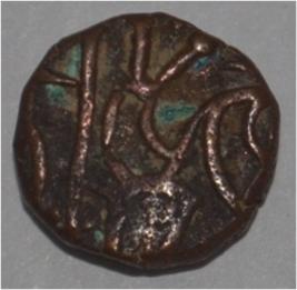 Obverse Horseman to the left. Man on the horseback and flagpole at the back. Reverse Couchant bull facing right and traces of legend on the top.