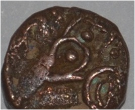In reverse coin damaged on upper portion.