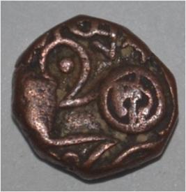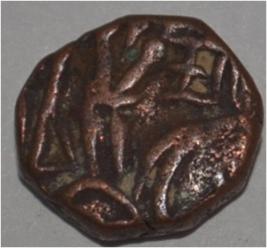 Obverse Horseman to the left. Man on the horseback and flagpole at the back. Reverse Couchant bull facing right and traces of legend on the top.