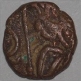 Obverse Horseman to the left. Man on the horseback and flagpole at the back. Reverse Couchant bull facing right and hump on the top.