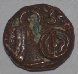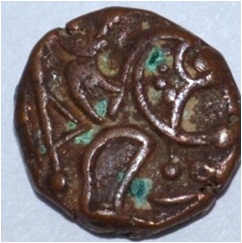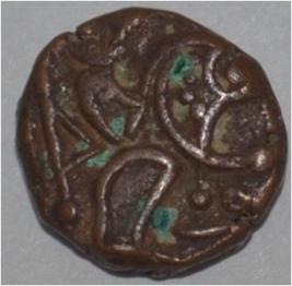 Obverse Horseman to the left. Man on the horseback and flagpole at the back. Reverse Couchant bull facing right and traces of legend on the top.