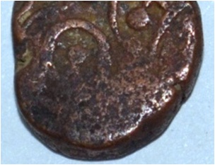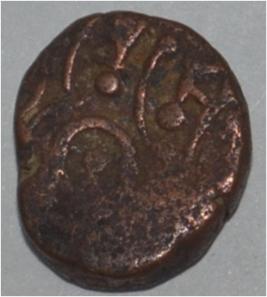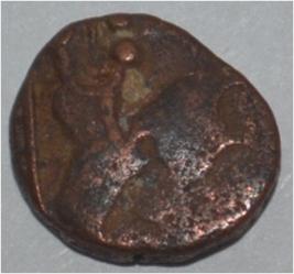 Coin in irregular shape. Obverse Horseman to the left. Man on the horseback and flagpole at the back. Reverse Couchant bull facing right and traces of legend on the top.
