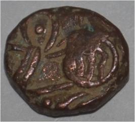 Obverse Horseman to the left. Man on the horseback. Reverse Couchant bull facing right and hump on the top right.