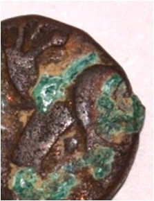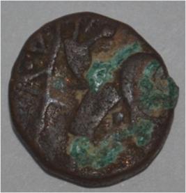 Obverse Horseman to the left. Man on the horseback and flagpole at the back. Reverse Couchant bull facing right and traces of legend on the top.