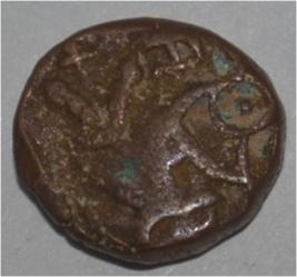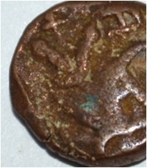 Obverse Horseman to left. Man on the horseback and flagpole is at the back. Reverse Couchant bull facing right and traces of legend on the top.