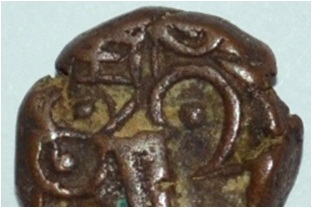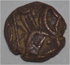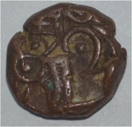 Obverse Horseman to the left. Man on the horseback and flagpole at the back. Reverse Couchant bull facing right and traces of legend on the top.