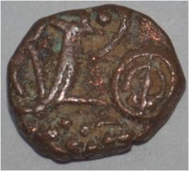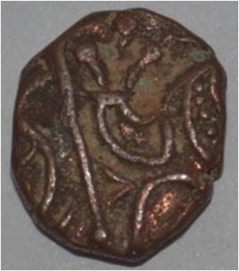 Obverse Horseman to the left. Man on the horseback and flagpole at the back. Reverse Couchant bull facing right and hump on the top.